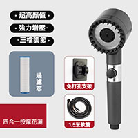 [1]【神奇增壓噴頭】1入組 單手增壓噴頭+免打孔牆座+1.5米鏈條淋浴管+可替換濾芯【五隻裝】-NT$998